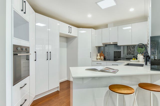 + Large kitchen with stone bench tops, stainless steel appliances, and ample storage space