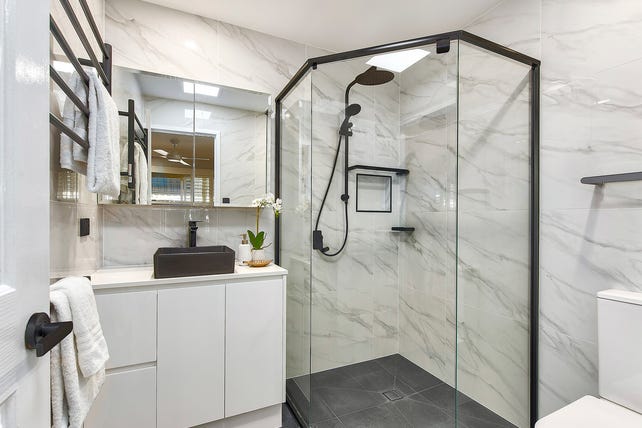 + Two bathrooms that have been completely renovated, with floor-to-ceiling tiles, and high-
