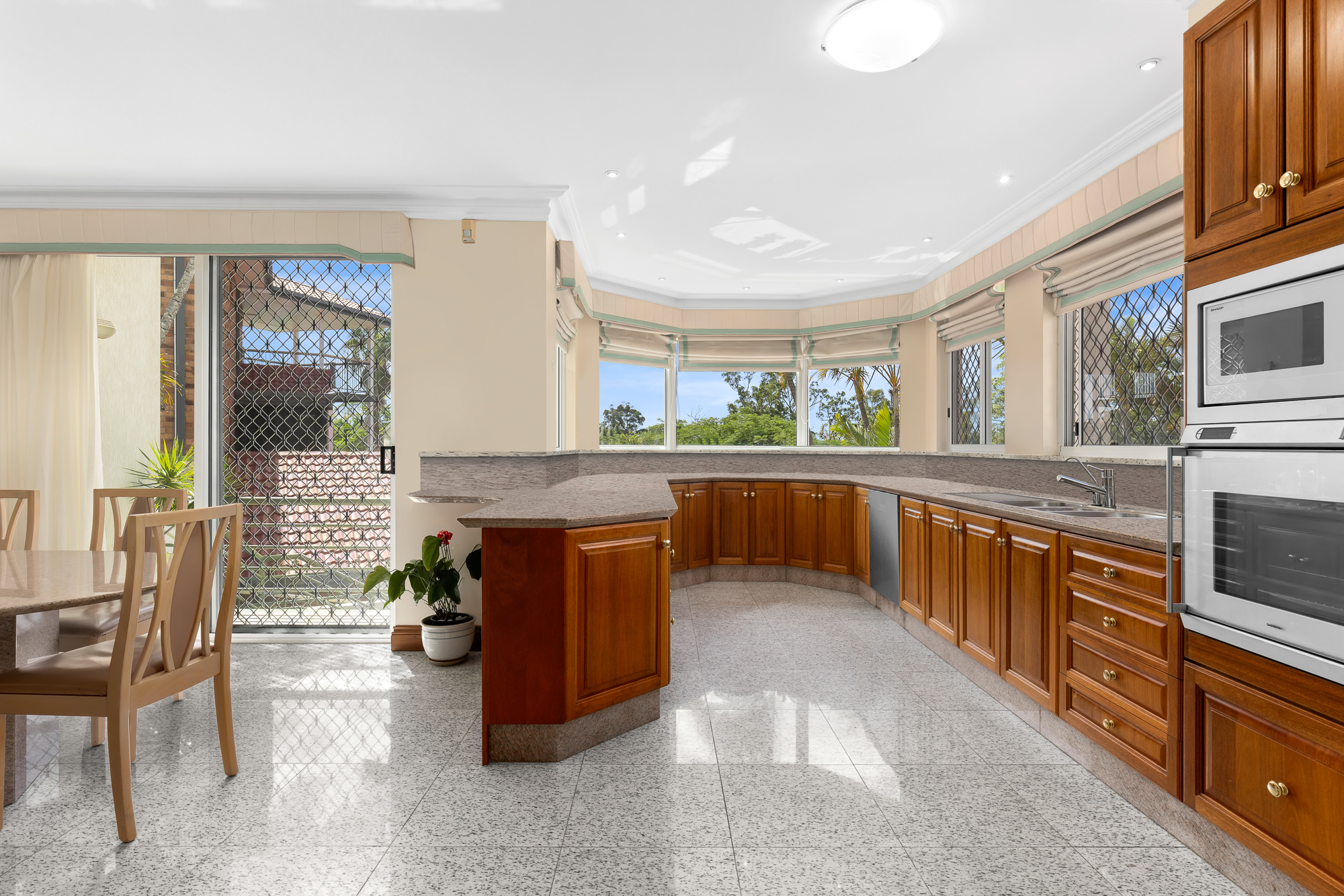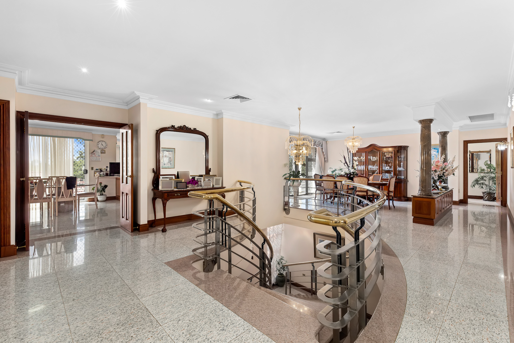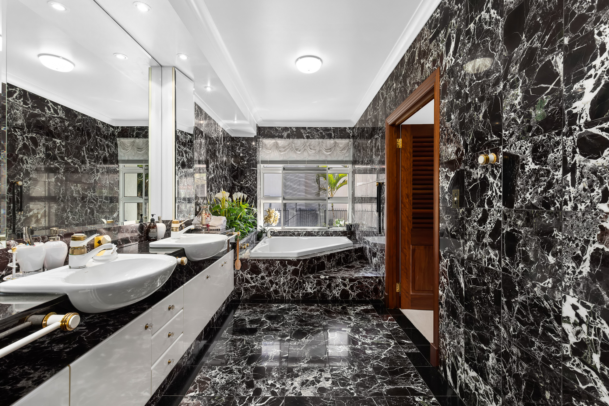 Stunning marble floors feature throughout and built on a suspended concrete floor with double brick walls lined with steel, the home has been built to last with no expense spared.