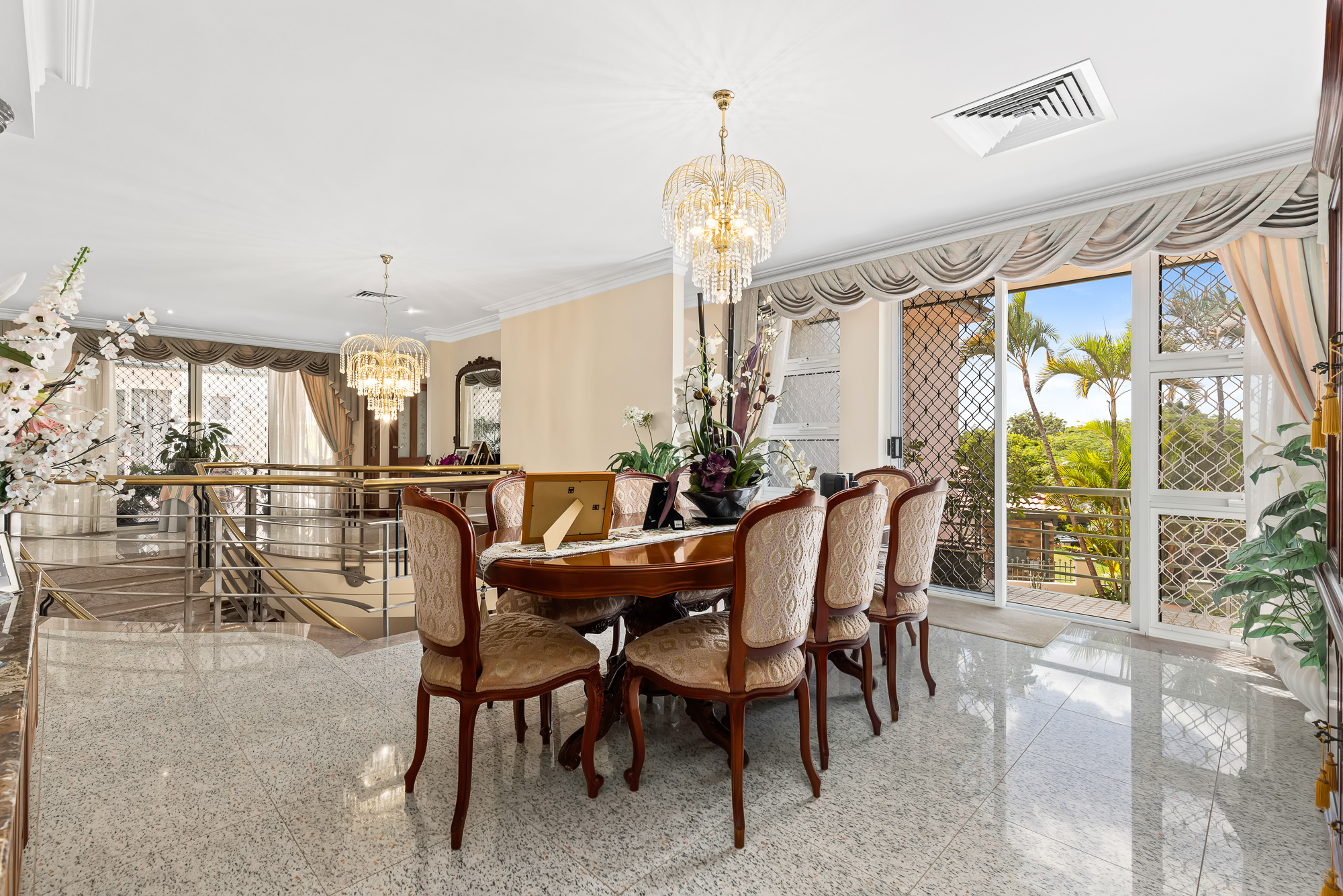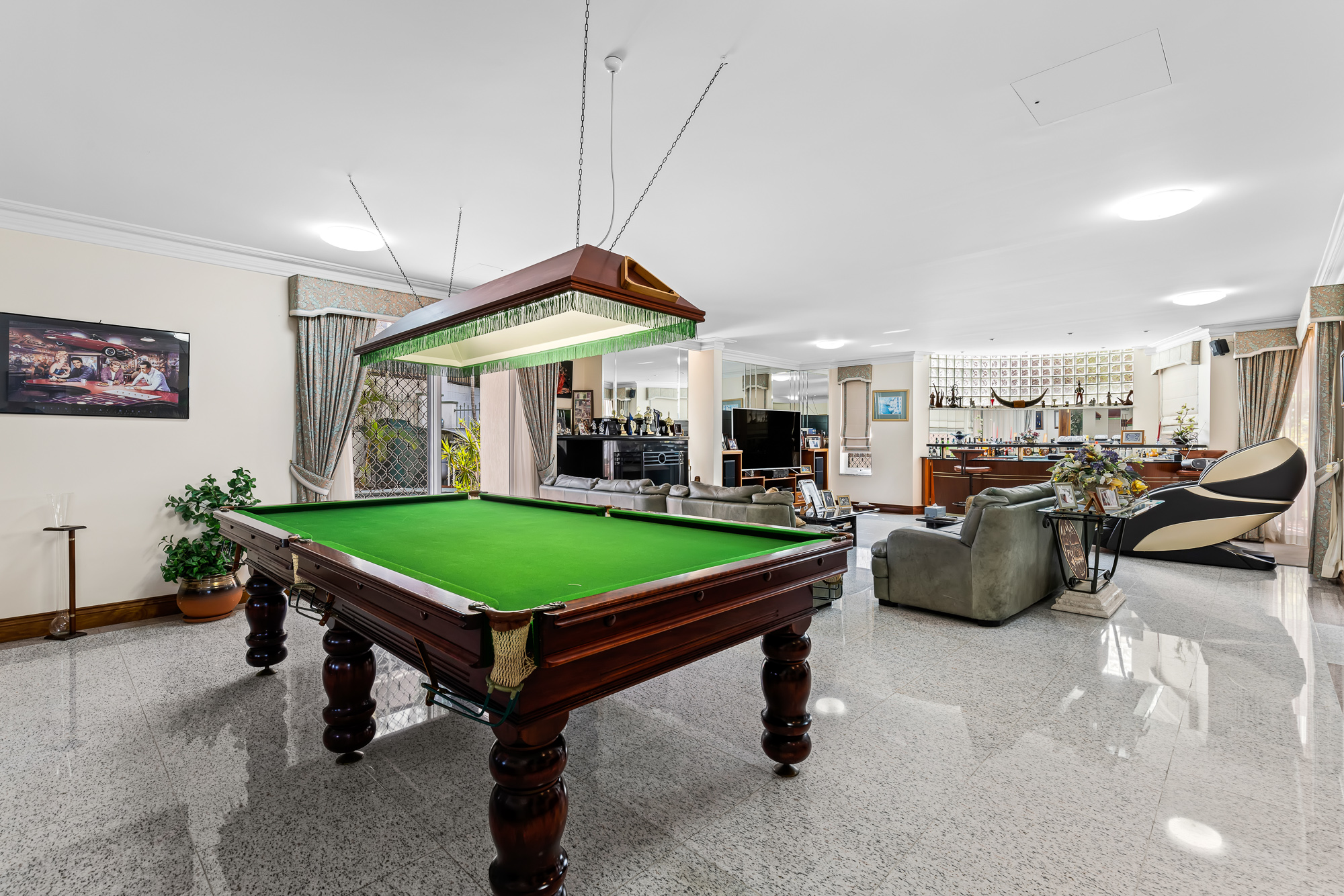 - In ground swimming pool - Large pergola area beside main lounge area - Bar with serving window and pool table in main lounge - Covered outdoor alfresco area with electric roof - Six marble bathrooms - Spacious laundry with extra storage - Stunning formal dining room - Alarm System - Beautiful outlook from most rooms of the home - Ducted air conditioning throughout - Established veggie patch - Laundry chute - Electronic gate access - 5 minutes drive to all major amenities