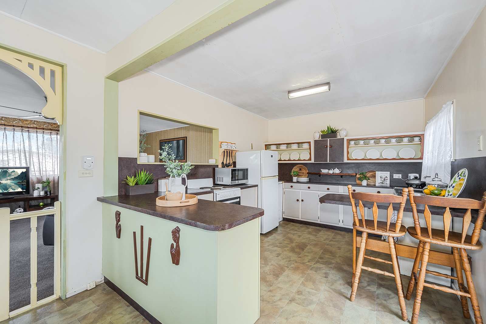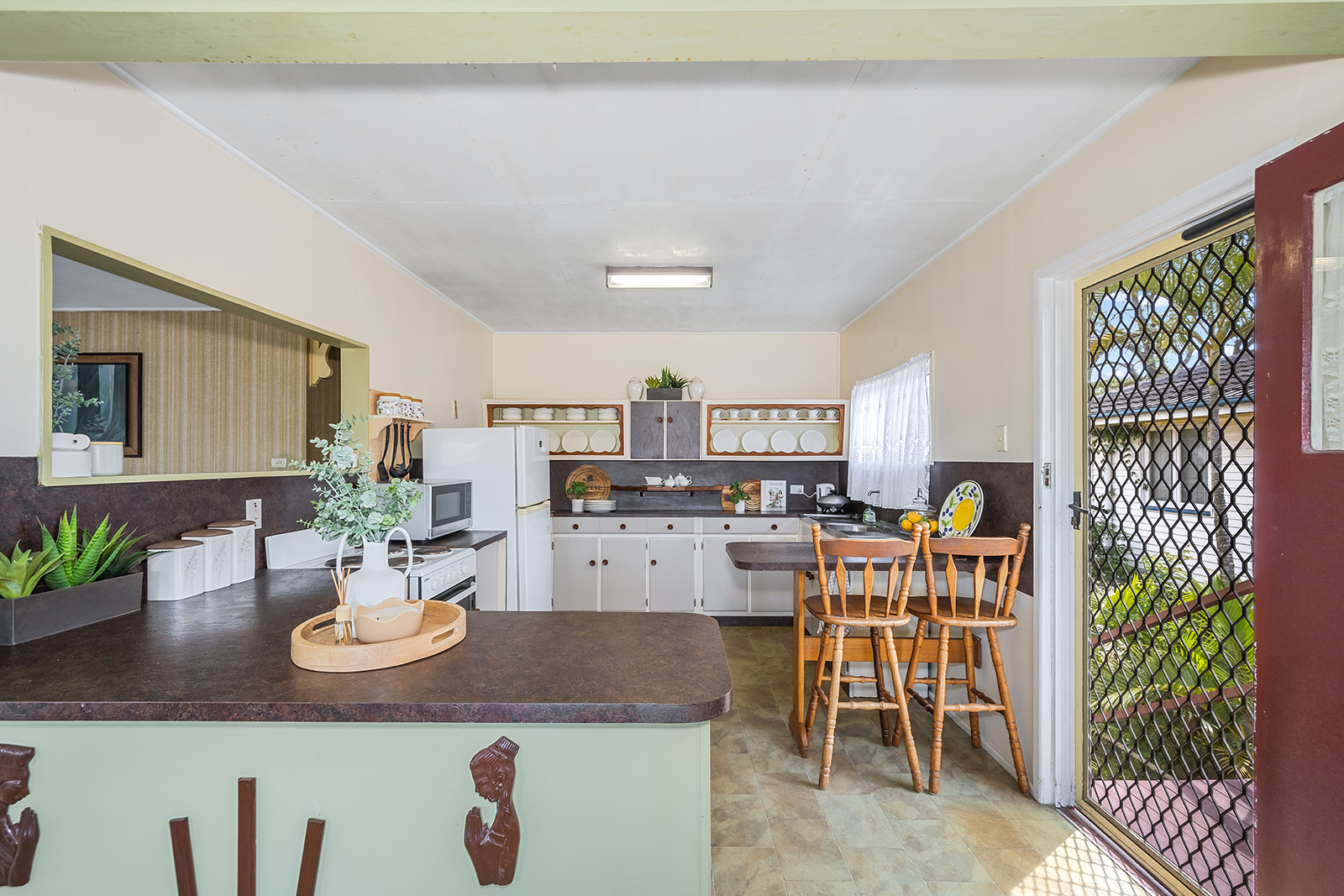 - 3 generous sized bedrooms with built in robes - Family bathroom with bathtub, shower and separate toilet - Charming family kitchen with abundance of storage, breakfast bar and electric cooking - Original fretwork throughout - Ceiling fans