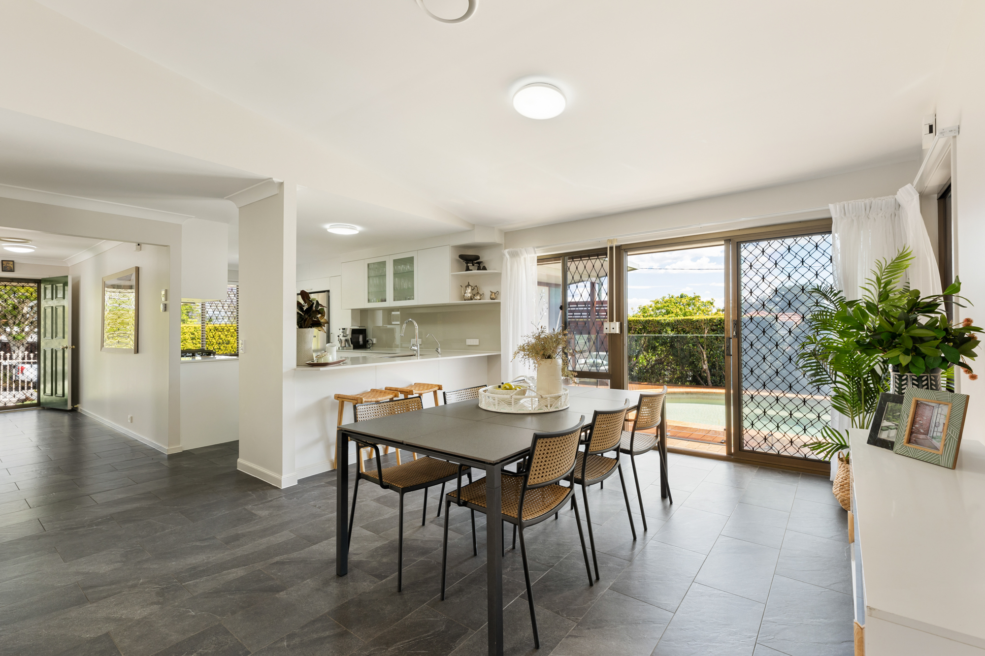 Features Include: - Sprawling six bedroom residence with contemporary move-in comfort - Huge formal dining/lounge plus open-plan living and dining with gabled roof - Large private sitting/media/rumpus room with indoor/outdoor connection - Massive modern kitchen with tremendous storage, gas cooking and sleek stone - Manicured and private landscaping with fenced flat yards - Huge covered alfresco entertaining overlooking large in-ground swimming pool with glass fencing and poolside cabana - Six built-in bedrooms plus separate home office - Private master with large walk-in robe and updated ensuite with floor to ceiling tiling - Three additional impressive bathrooms - Separate laundry with cabinetry - Split system air-conditioning - Double remote garage with drive through rear - Walk to Geebung State School, St Kevin's Catholic Primary, bus and parkland - Minutes to Westfield Chermside, train station, local shopping and dining