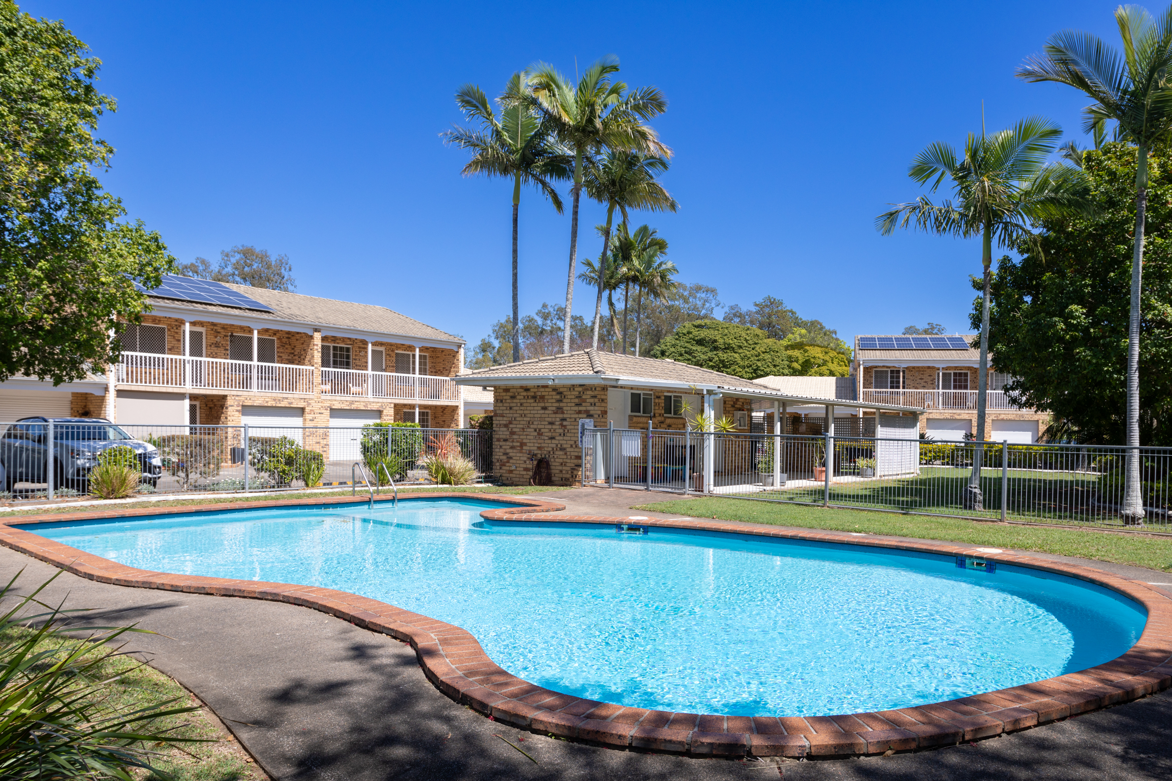 Enjoy a fully fenced private courtyard with side access to a garden shed, perfect for additional storage. A 15-panel solar system significantly reduces power bills, enhancing energy efficiency and sustainability. Outside, you'll also find manicured lawns and gardens, an undercover BBQ area for hosting private gatherings, and access to the inviting in-ground pool.