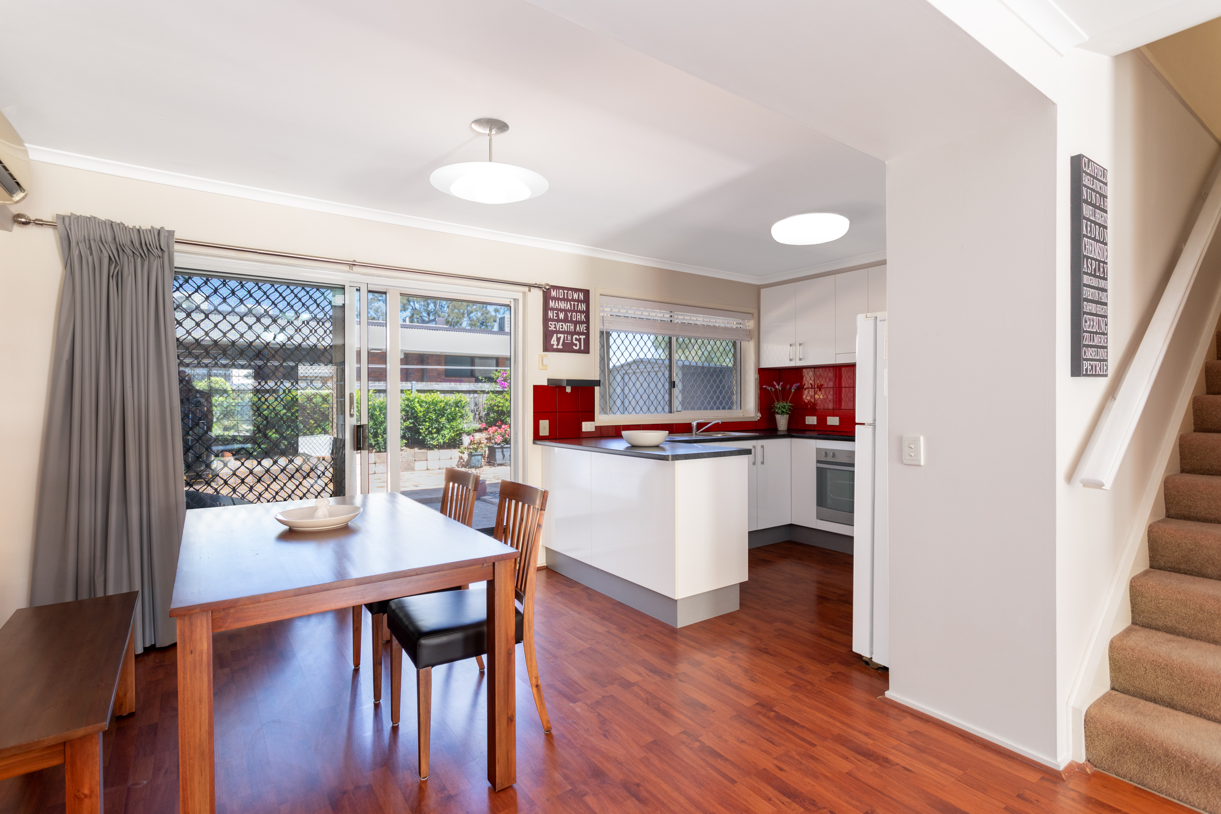 The well-appointed kitchen features a stylish tiled splash back and plenty of bench and cupboard space, ideal for all your culinary needs.