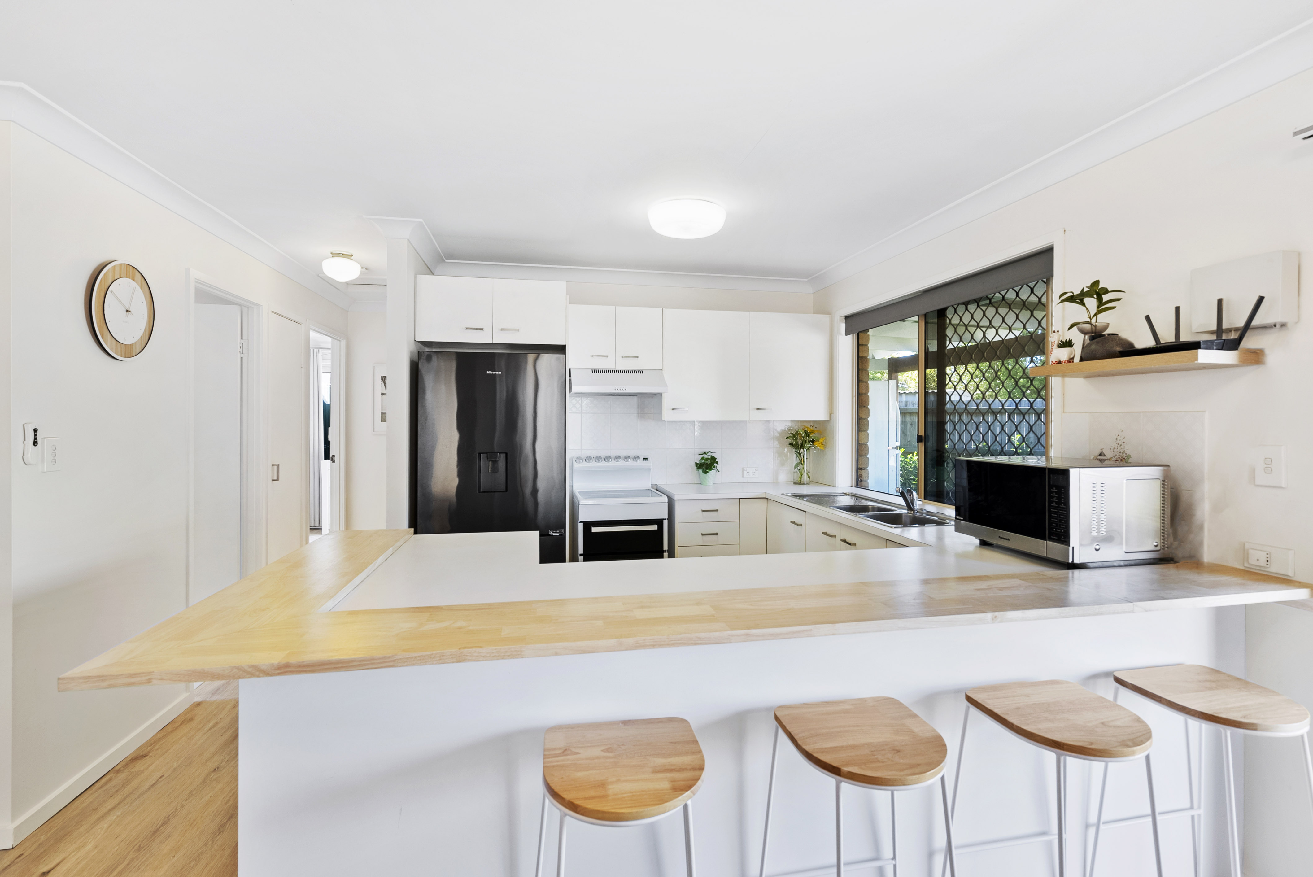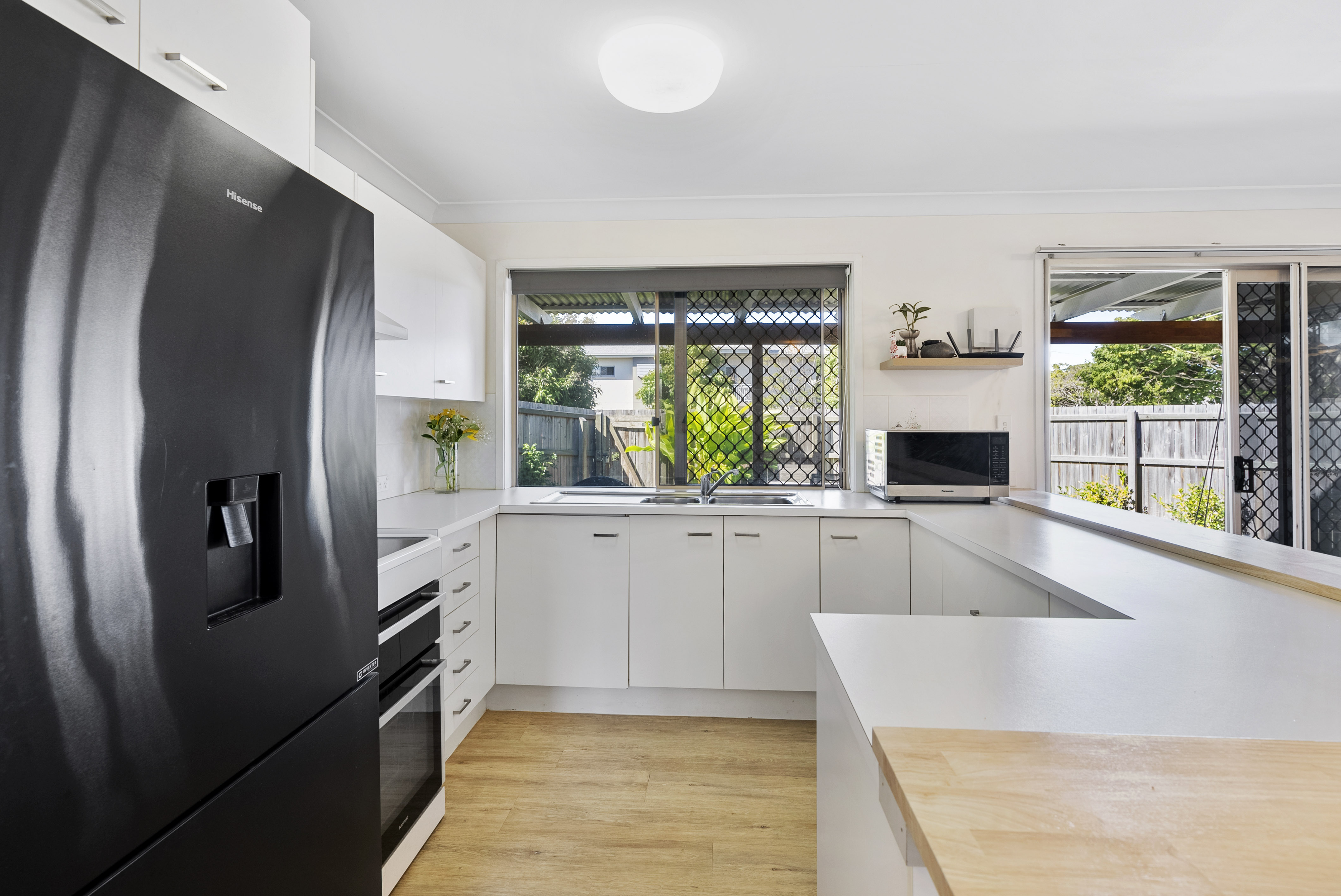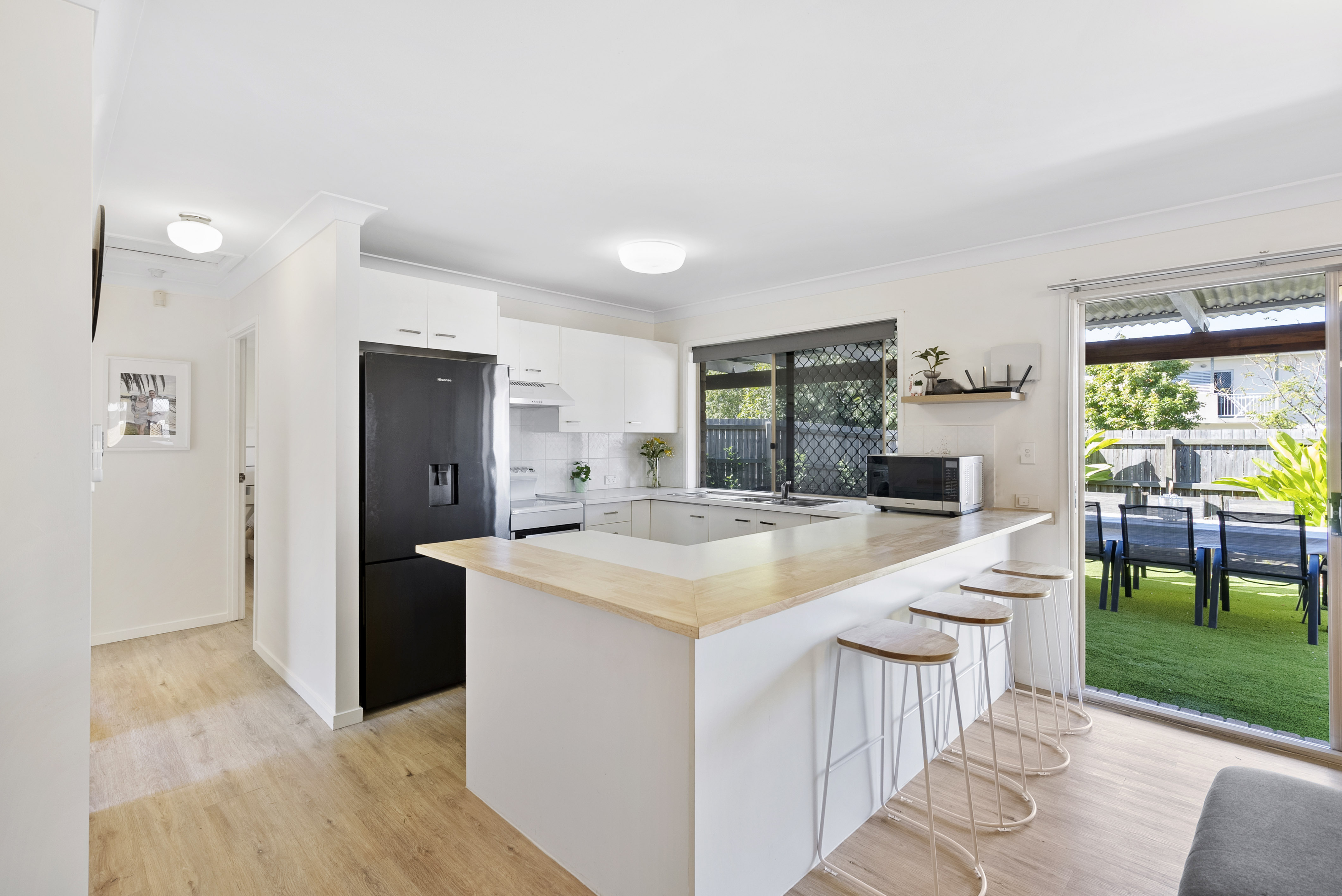 The property is situated in a boutique complex of just four residences. Internally, clever renovations to the kitchen result in a chic, timeless aesthetic with bonus bench space. Neutral vinyl plank flows throughout the townhouse with tiles to the wet areas. Plenty of windows allow for lots of natural light to fill the spaces.