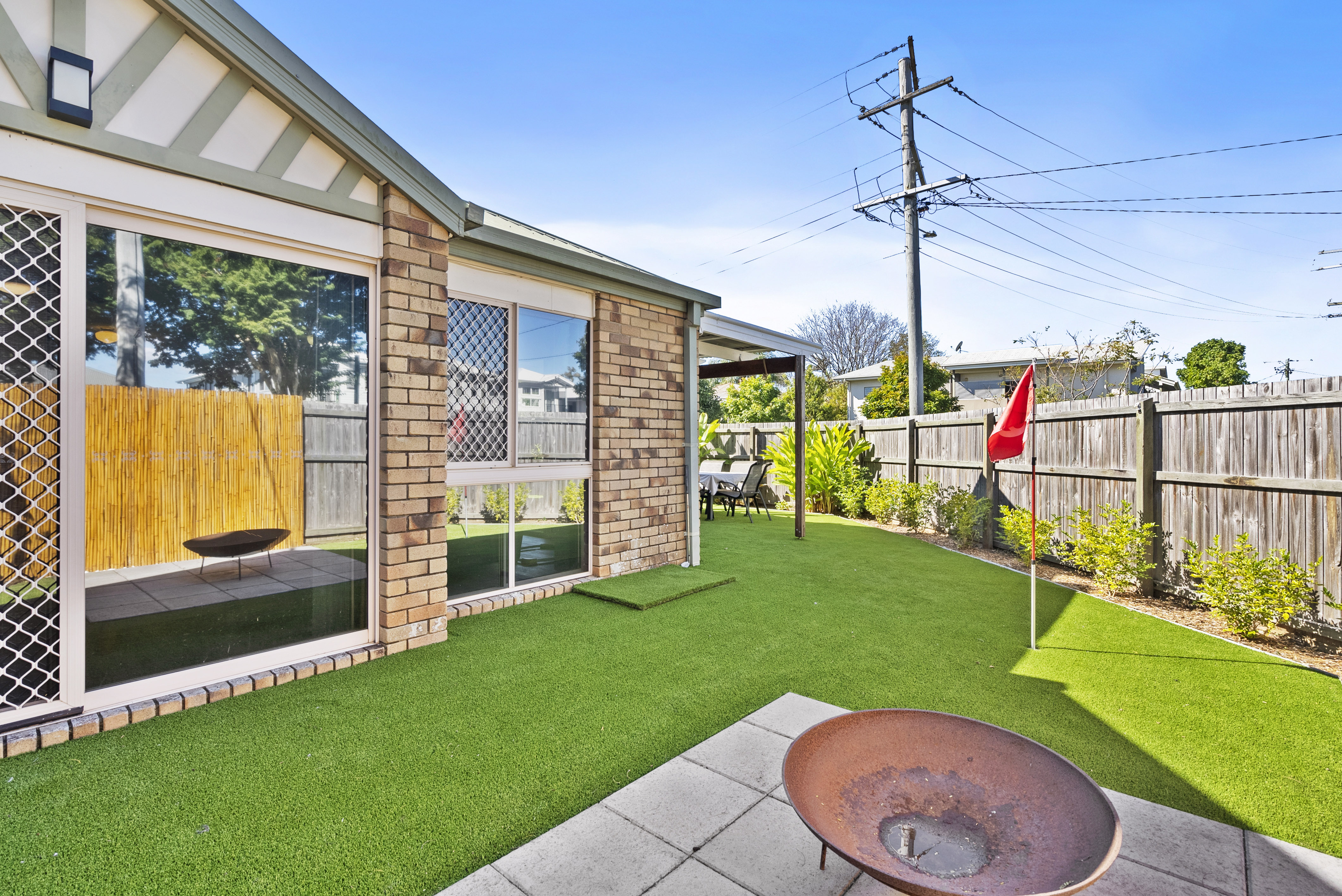 Externally, the generous courtyard is astro turfed (no lawns to mow here!)
